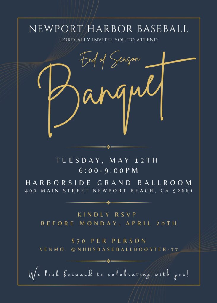 We are excited to invite our Newport Harbor Baseball families, friends, and supporters to our End of Season Banquet as we come together to celebrate an incredible season, honor our players and coaches, and recognize the memories and accomplishments that made this year special.